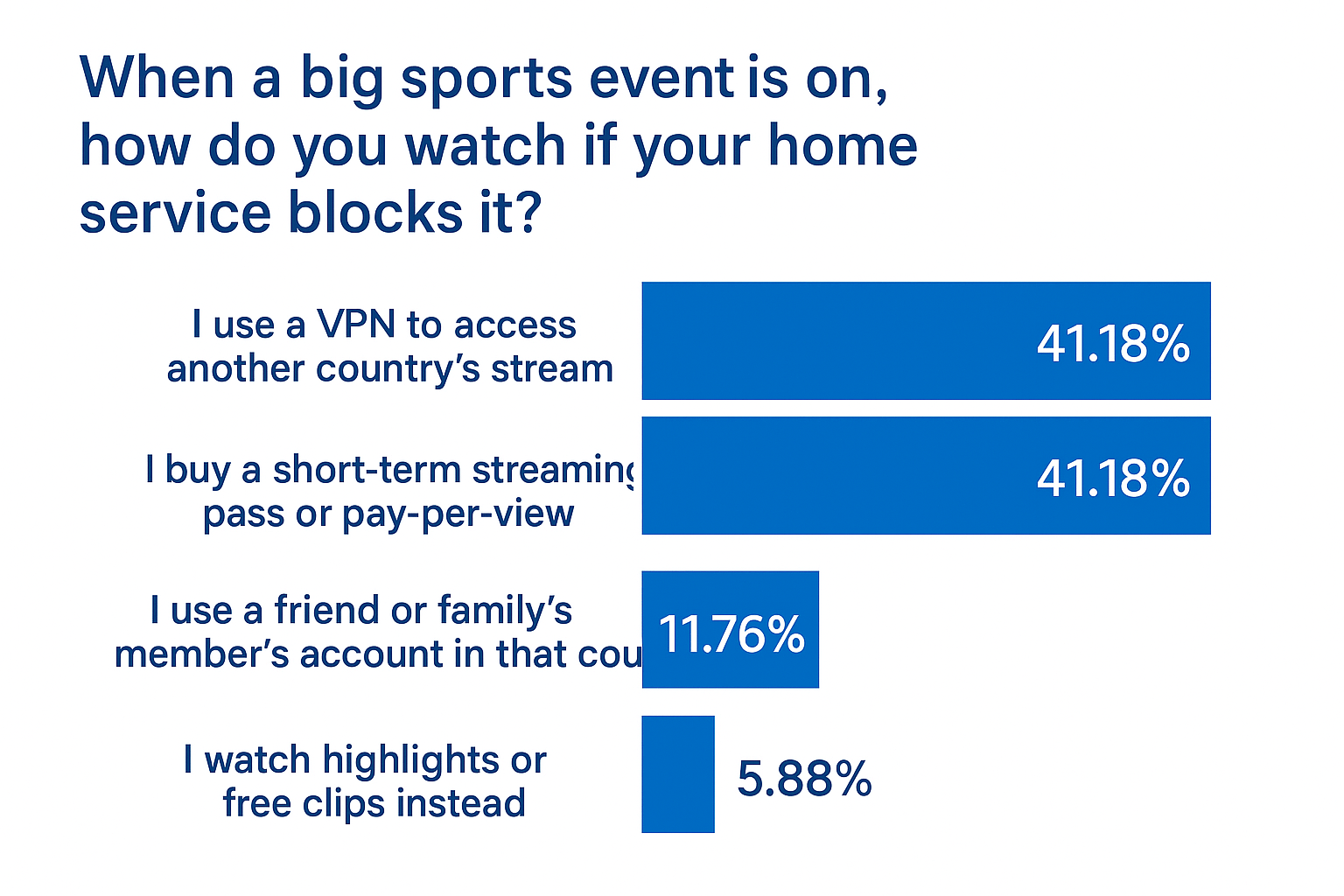 Our last poll results show that people prefer to use both a VPN and a streaming pass to watch sports events.
